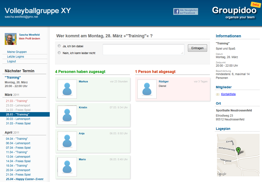 Zusagen sammeln - Dein Team gibt online Bescheid, wer dabei ist